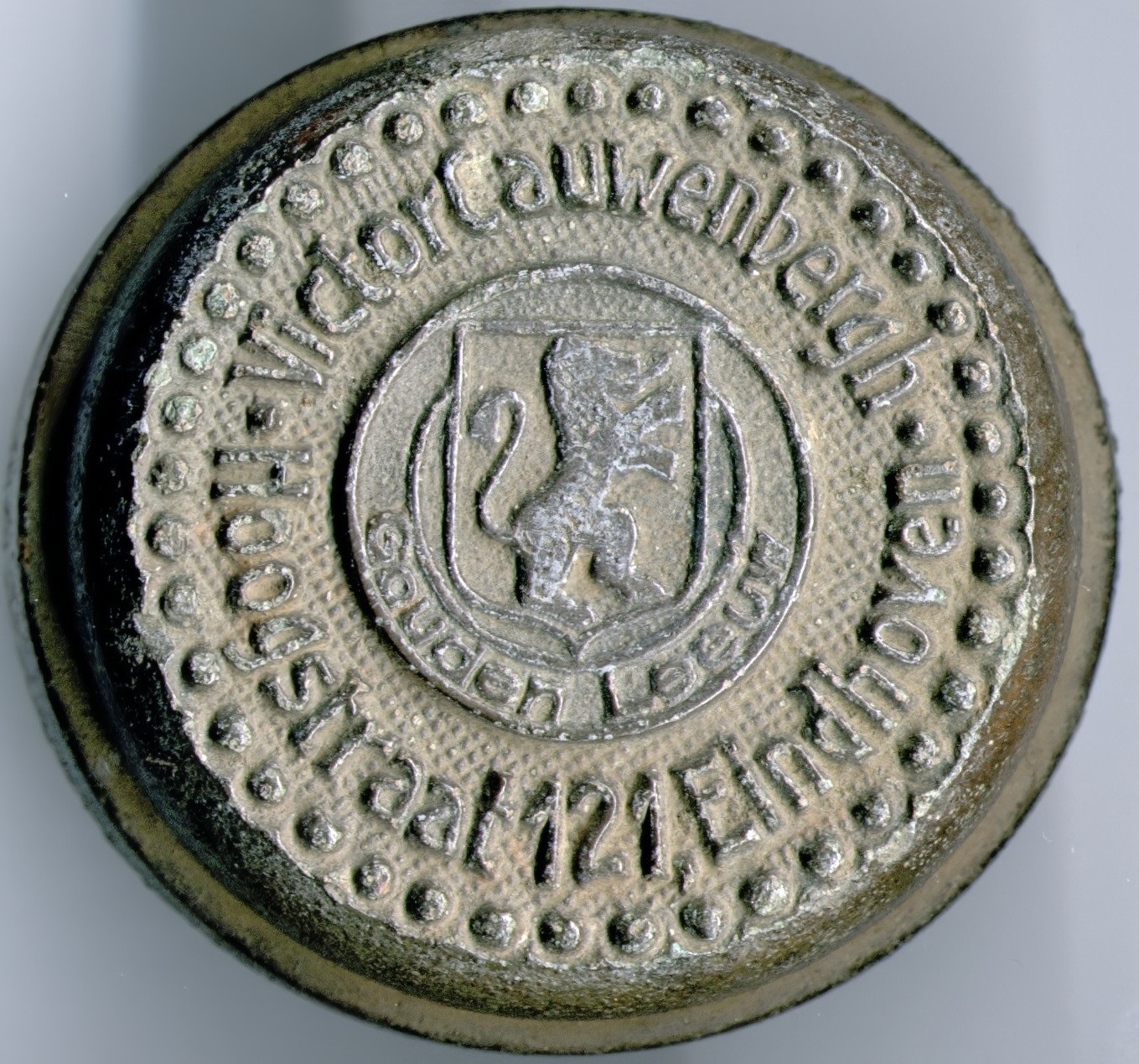 De foto toont een fietsbel. Fietsenfabriek "De Gouden Leeuw" werd in 1917 opgericht. In 1943 verhuren ze tandems met (toen belangrijk!) goede banden. "De Gouden Leeuw/Victor rijwielfabr [meer]