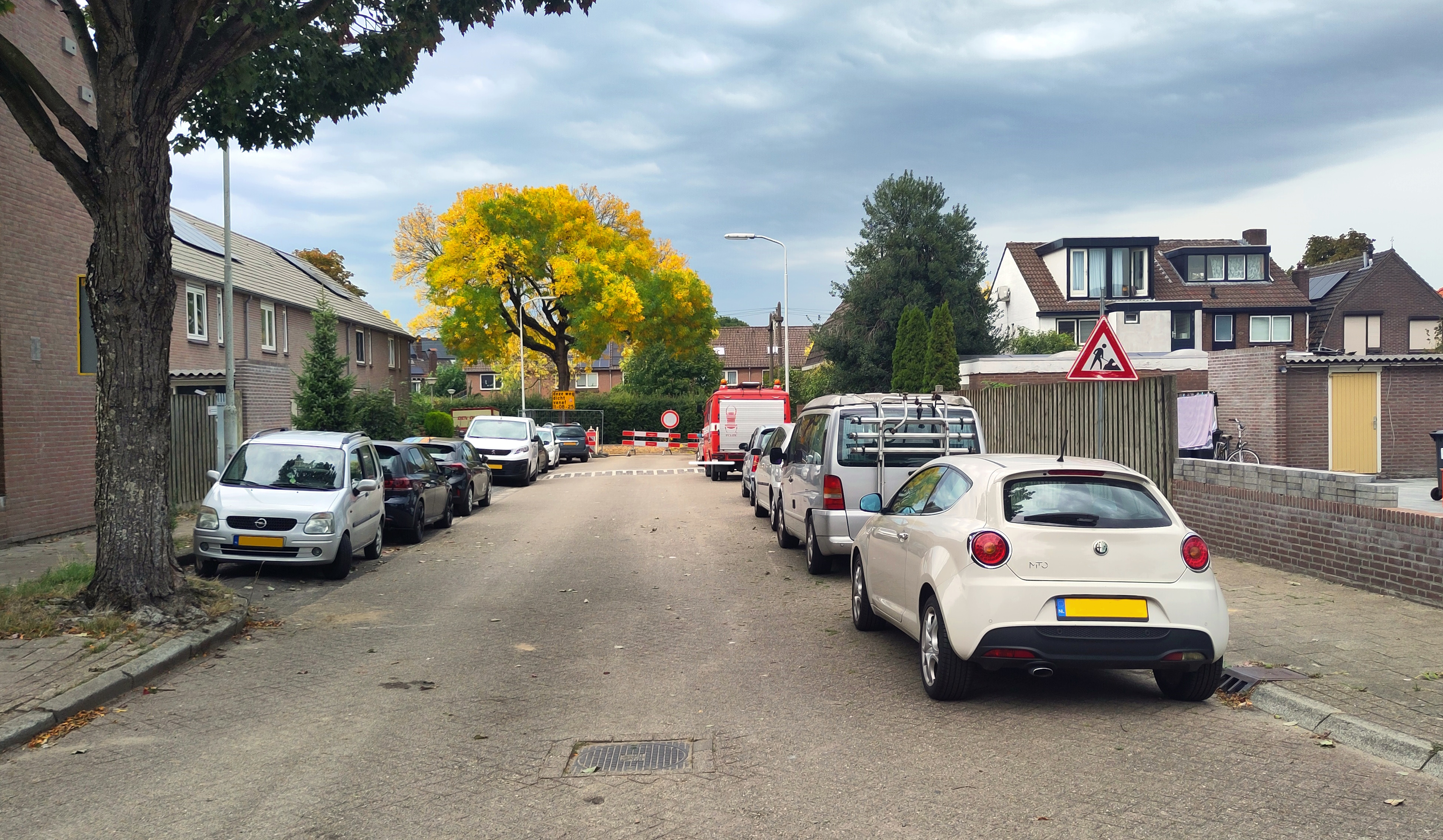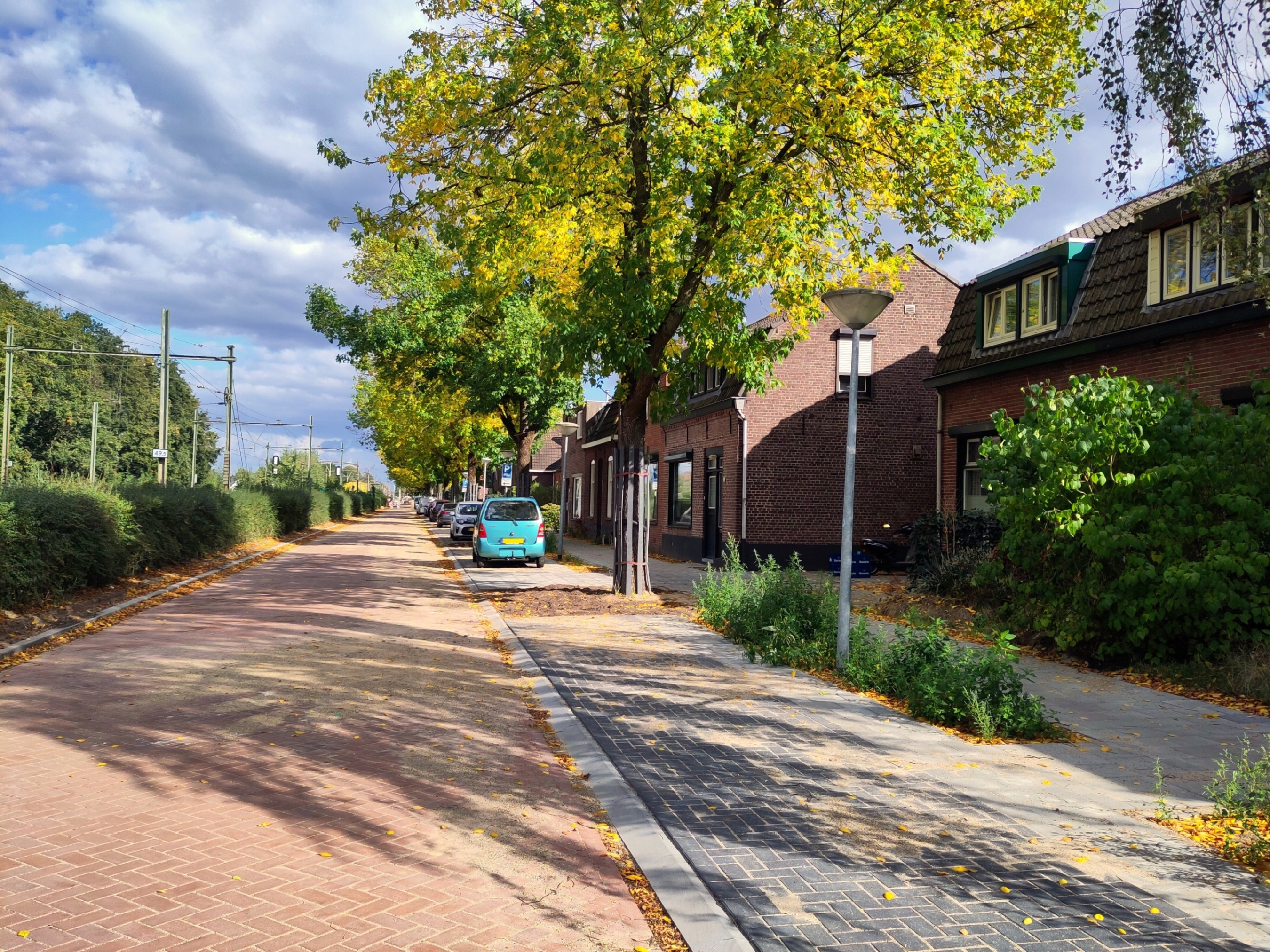 De Van Meursstraat in de Gestelse Schrijversbuurt op een foto van 19 september 2025. De straat was veel te breed voor een woonstraat en is daarom In 2024-2025 opnieuw ingericht en versmald, zodat er m[meer]