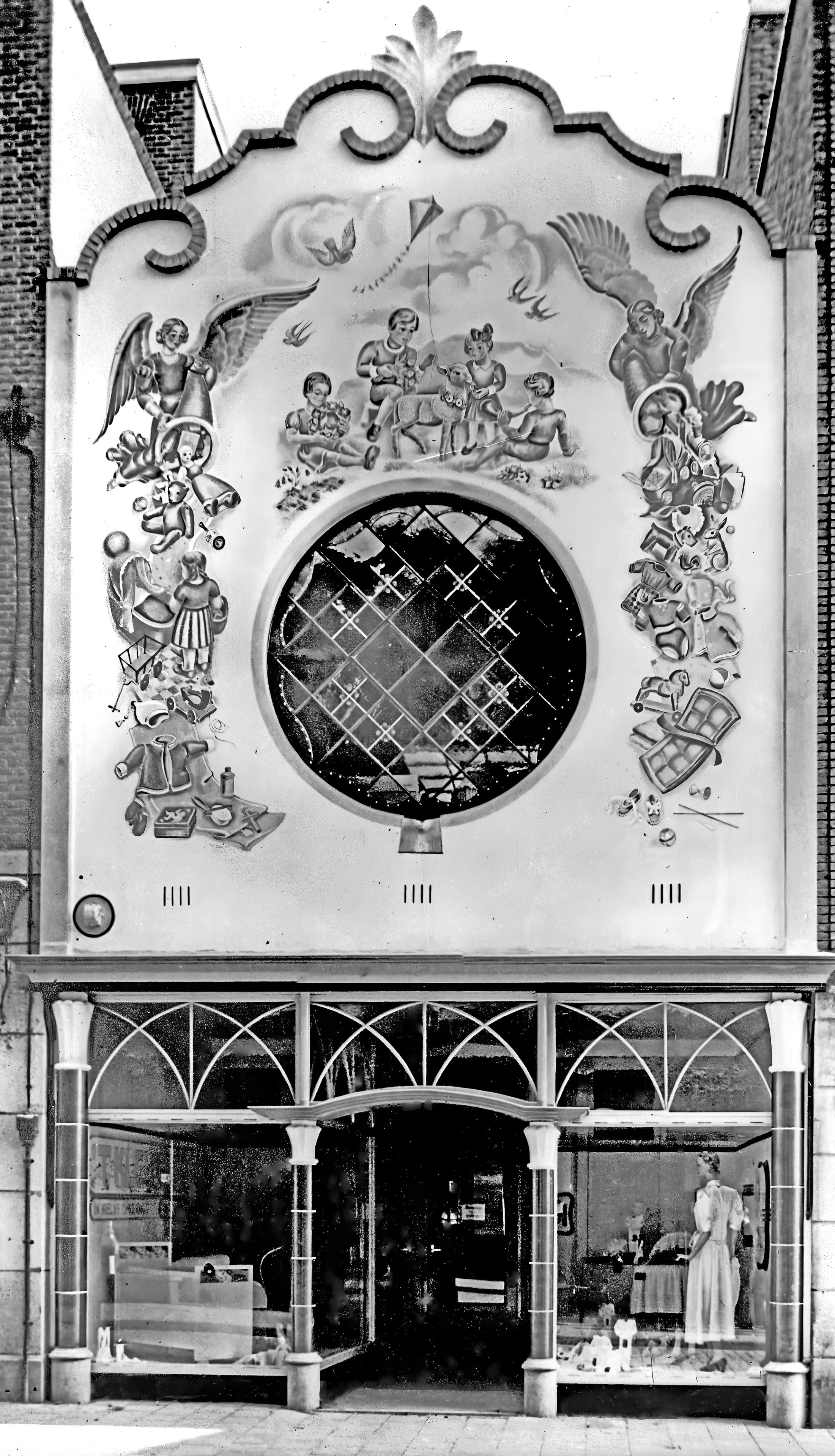 In dit pand op de Hooghuisstraat was ooit de bekende modezaak Van Hout Ververgaard gevestigd. Het pand staat er nog steeds, maar helaas is de sierlijke en kleurrijke gevel door de jaren heen wel verlo[meer]