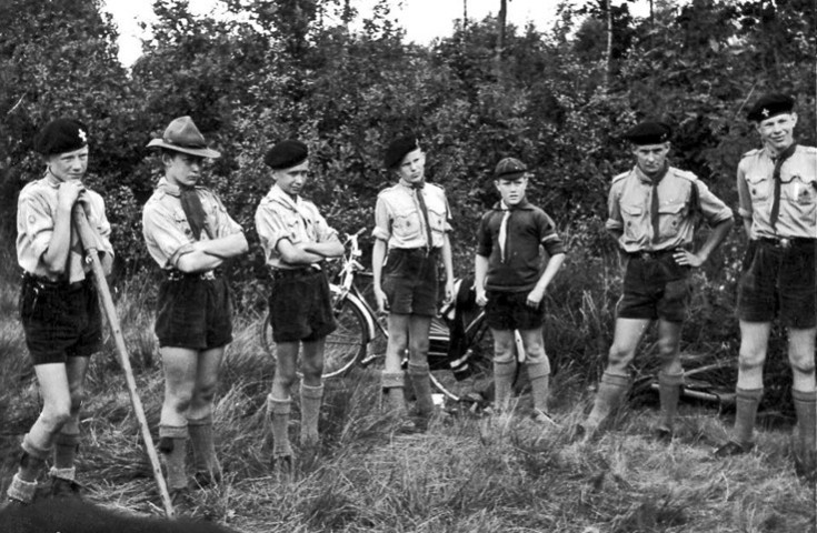 In 1961 had Theo Efting al verstand van kamperen. Van links naar rechts: Hopman Penson, Oud hopman Cuppers, Theo Efting (van Reisbureau Efting),Gijs Dijsselbloem, Jos Teuwen en Paul Pilgram.