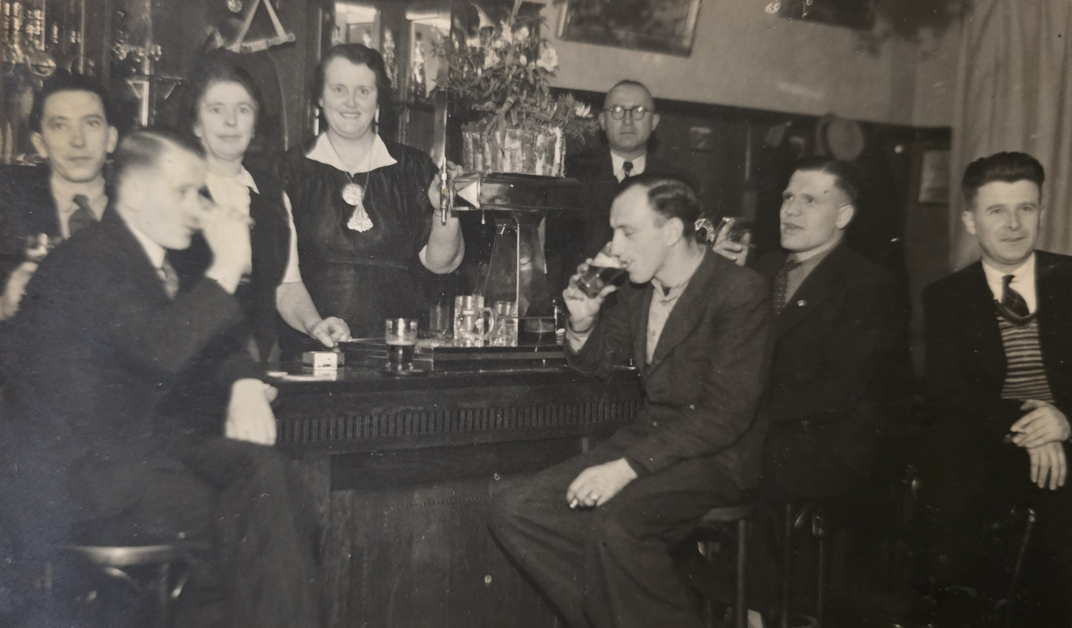 De biljartclub van café Betsie Jorissen aan de Hoogstraat. Mijn vader Wim Pluijm zit tweede van rechts aan de bar. De naam van het café was Cambrina en het was op de Hoogstraat 31. [meer]