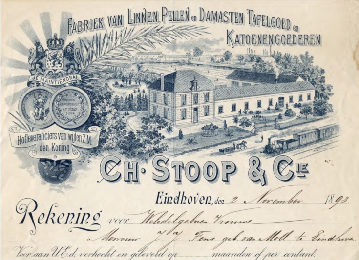 Koninklijke Nederlandsche Fabriek van Linnen en Tafelgoederen, zo vermeldt deze nota. Een nota voor J.J. Fens, waarschijnlijk de beroemde Eindhovense notaris. Wie helpt bij het bepalen waar deze fabri [meer]