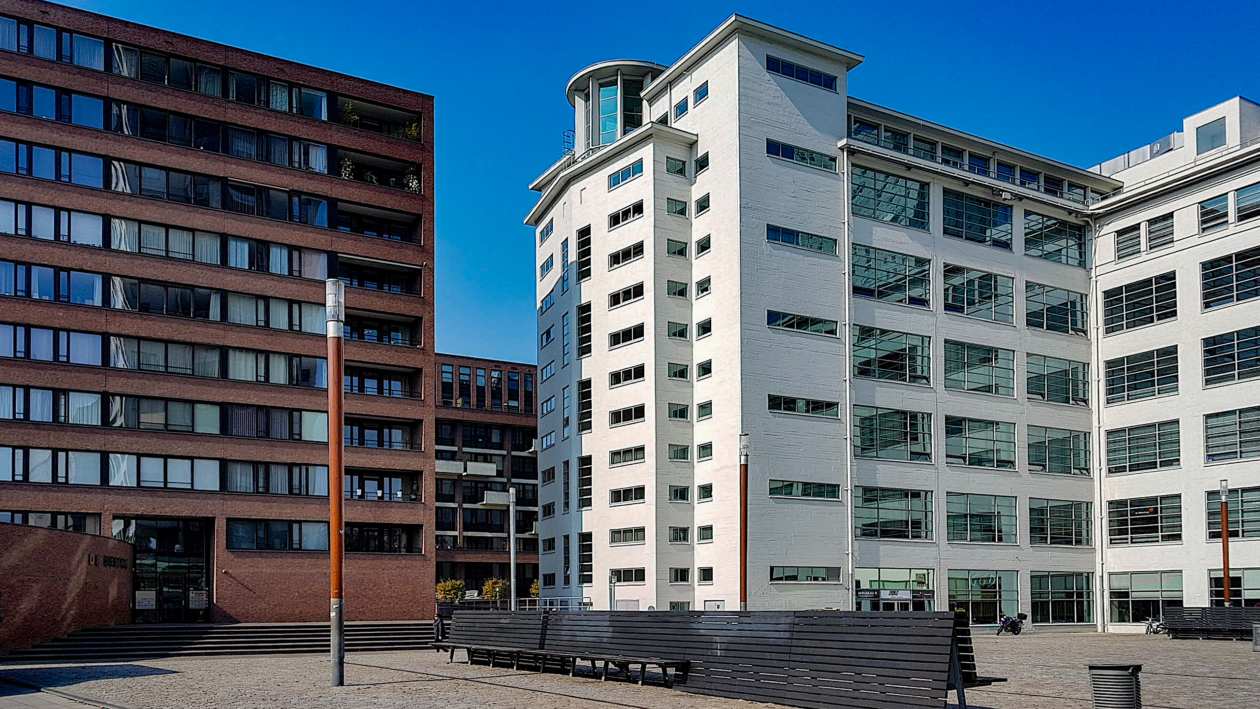 Het Clausplein een paar jaar voordat het werd vergroend. Rechts een vleugel van de Witte Dame, waarin op de begane grond onder meer horeca is en ook de GGD een vestiging heeft. Links een van de nieuwe [meer]