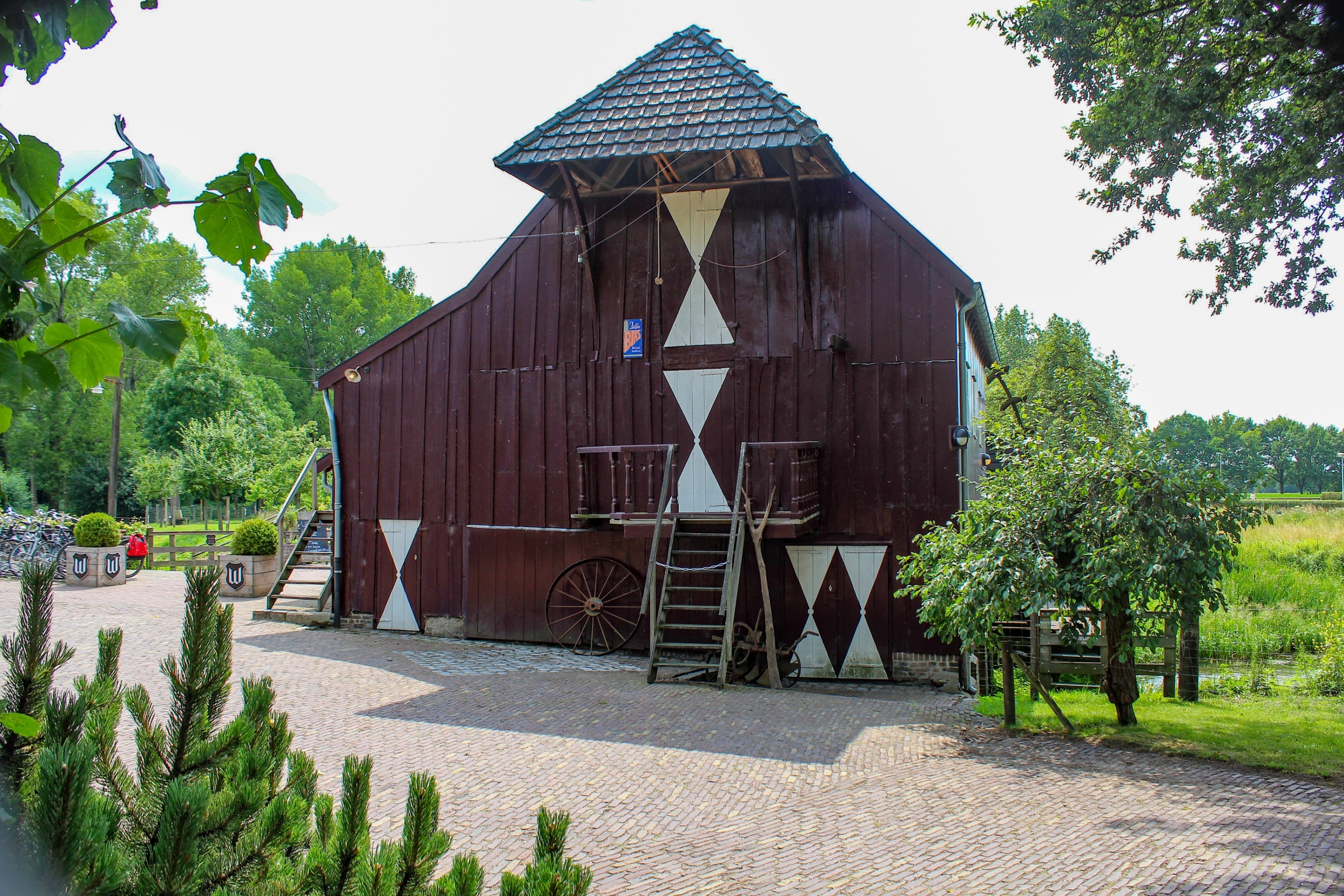 De Opwettense Watermolen. Deze staat net buiten Eindhoven, in de gemeente Nuenen. Op de achtergrond is het grote schoepenrad van de molen te zien, dat met een doorsnede van 9,3 m het grootste van Bra [meer]