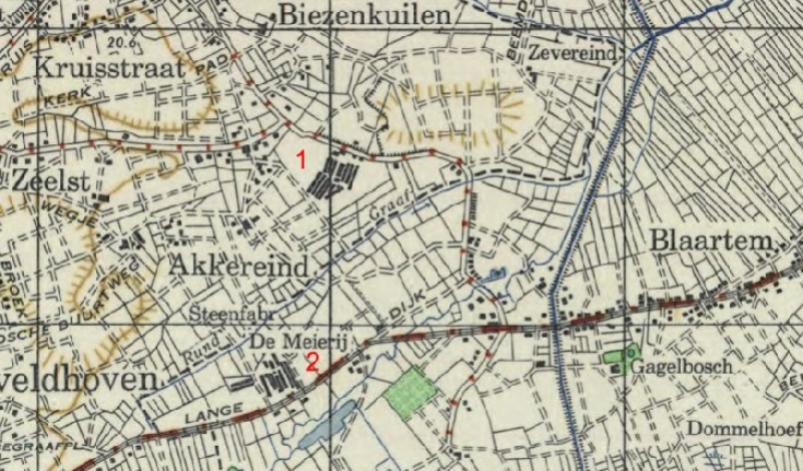 Hierbij de ligging van steenfabriek De Koraal. 1928 op 1991