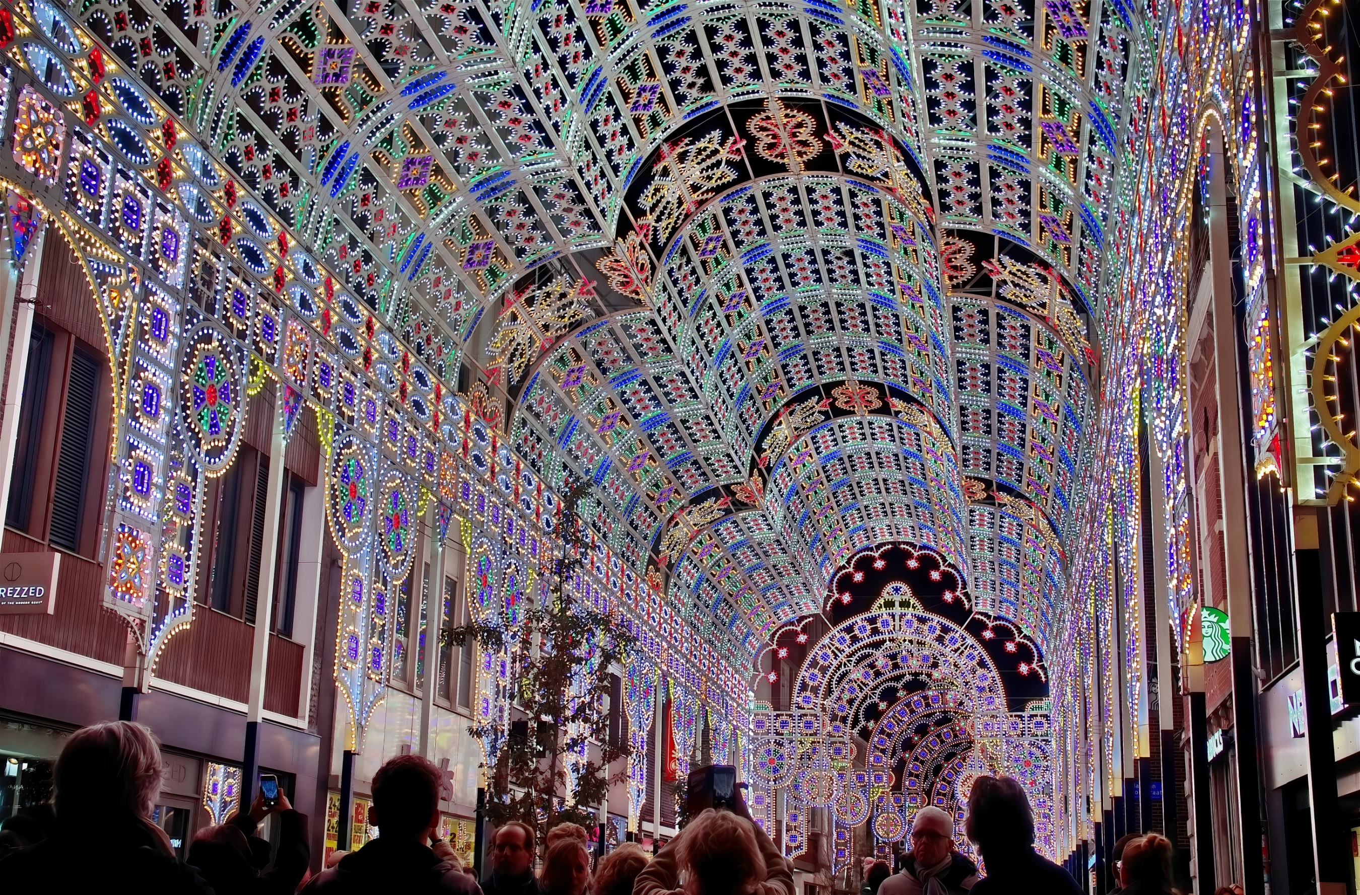 Een van de populairste Glow-objecten is Luminarie De Cagna, dat in 2025 op de Rechtestraat te beleven was. Zie ook o.a. de foto's #26071, #26121, #54269 en #56666. (Red.)