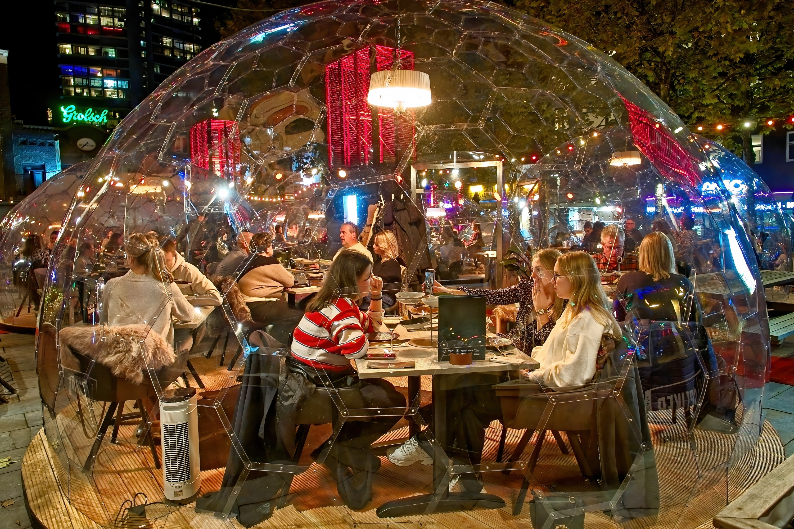 Thomas Eindhoven biedt van november tot en met januari Dinner Domes om overdekt warm te eten onder de sterren. (Red.)