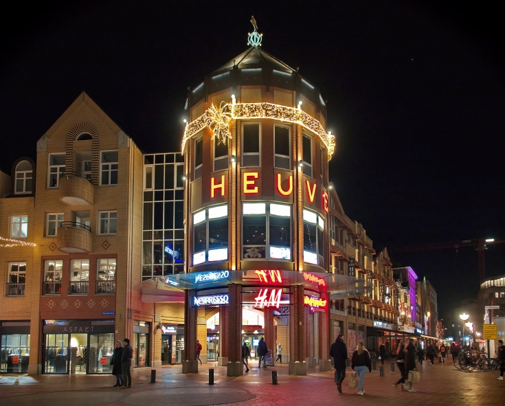 In december 2022 maakte Frans van Beers op veel plaatsen in het centrum foto's van de jaarlijkse feestverlichting. Hierboven de toren van winkelcentrum Heuvel, op de hoek van de Markt en de Nieuws [meer]