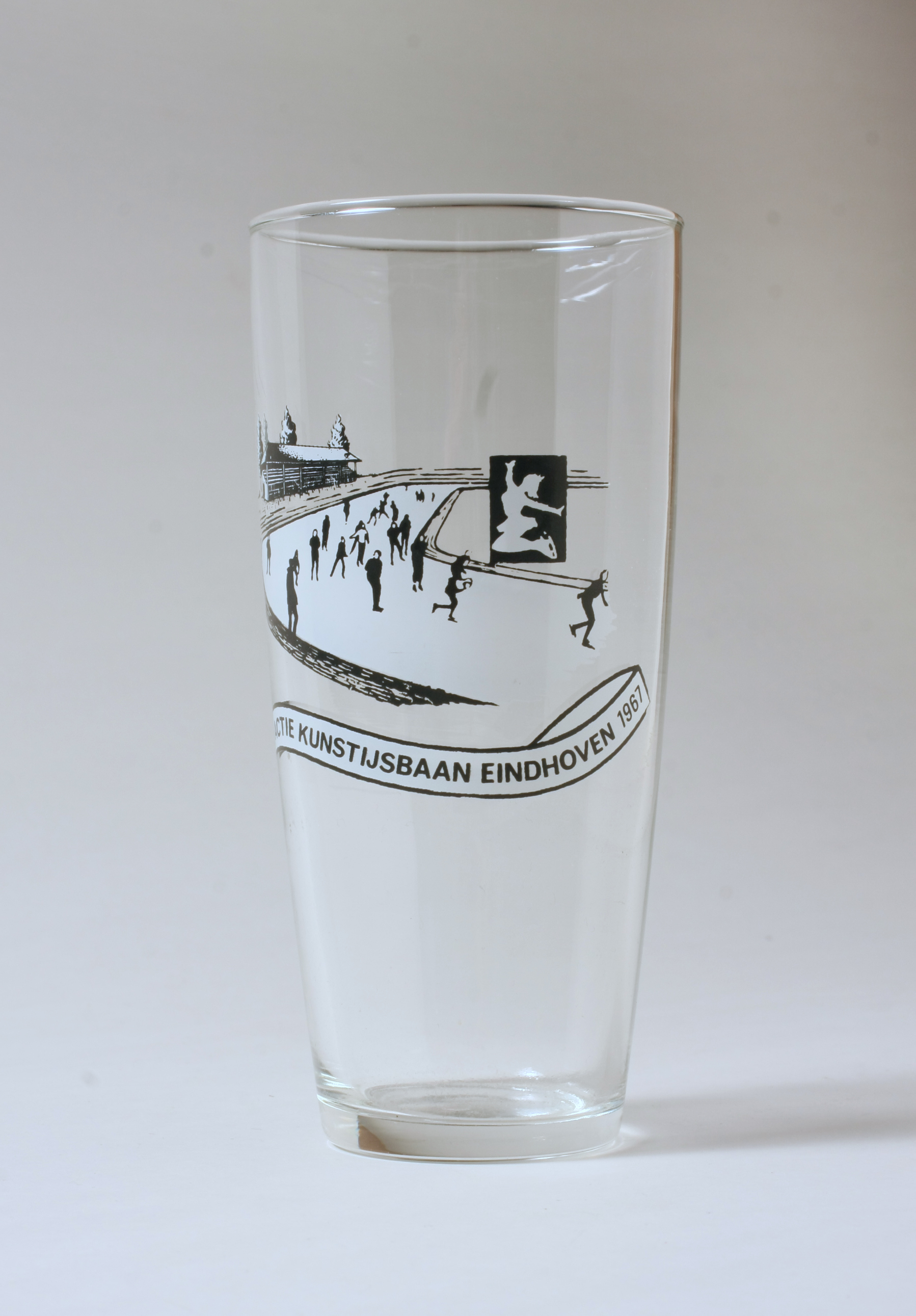 Een glas dat werd uitgebracht bij de opening van de Eindhovense kunstijsbaan in 1967. (Red.)