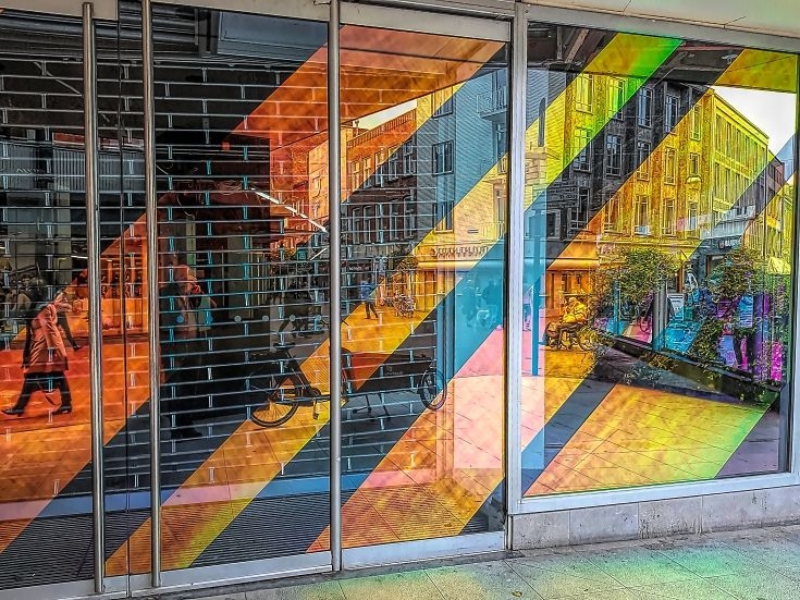 In de herfst van 2017 werden in de Vrijstraat en de Rechtestraat delen van de etalageruiten van het gesloten V&D-pand voorzien een kleurrijke spiegelende coating. Misschien was dat mede in verband [meer]