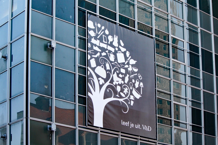 Dit logo is in de laatste jaren van het bestaan van V&D gebruikt in talloze reclames in media en dus ook aan de gevel in de Vrijstraat. Een paar jaar later was de warenhuisketen failliet. Dit deel [meer]