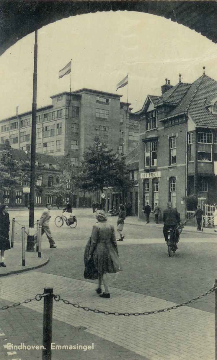 Philipsfabrieken met afgewerkt Philipspersoneel aan de Emmasingel. (Red.)