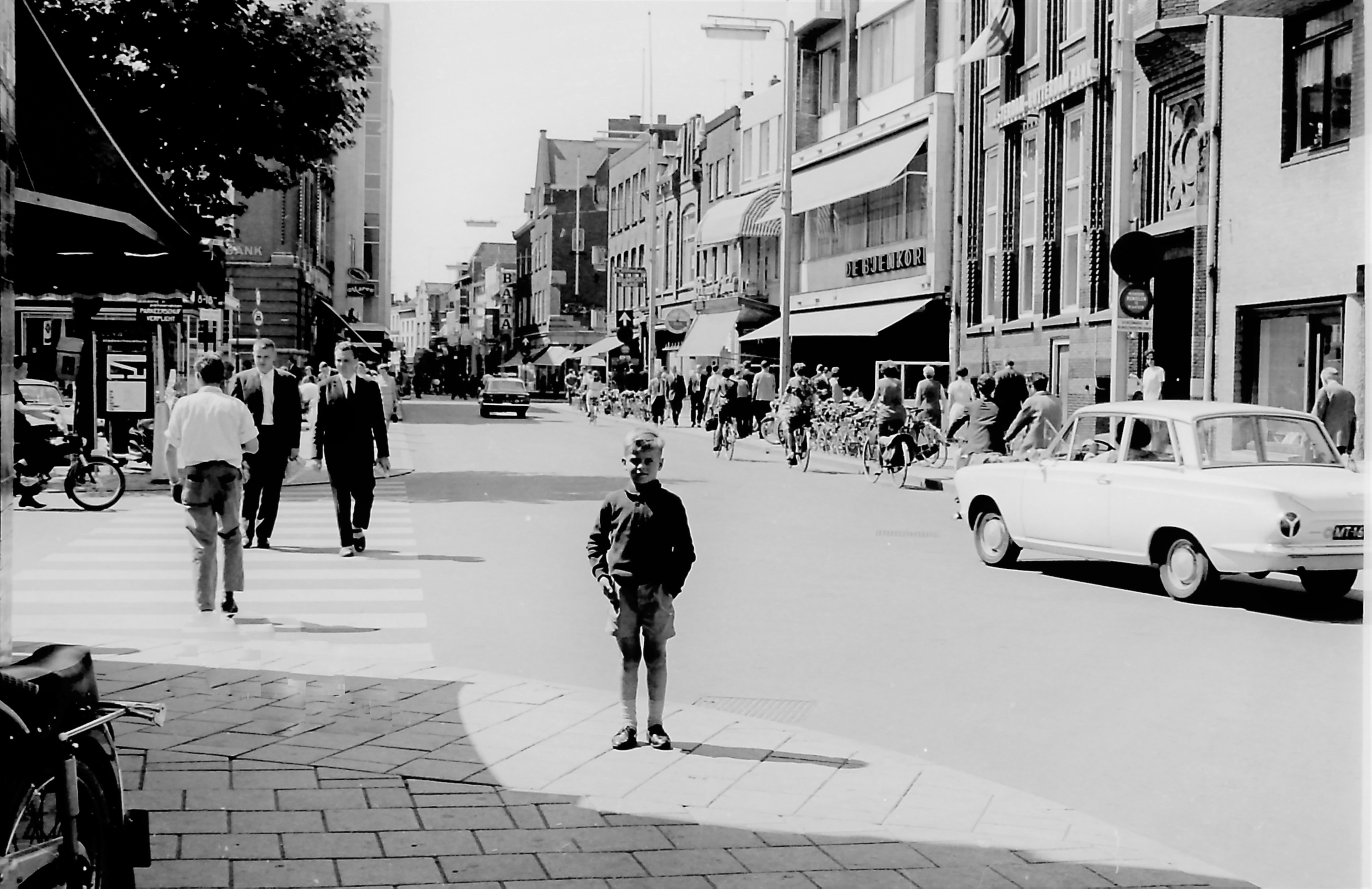 De Markt in 1963. We kijken vanaf de Markt de Marktstraat en de Vrijstraat in. De foto is gemaakt door mijn schoonvader, en de jongen op de foto is mijn zwager. Het pand met de grote zonneluifels is [meer]