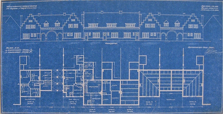 Dit is de originele blauwdruk van de tunnelhuizen Hastelweg 96/98---106/108. Deze hangt op een kantoor bij St Trudo bouwvereniging. Met dank aan Harieke.