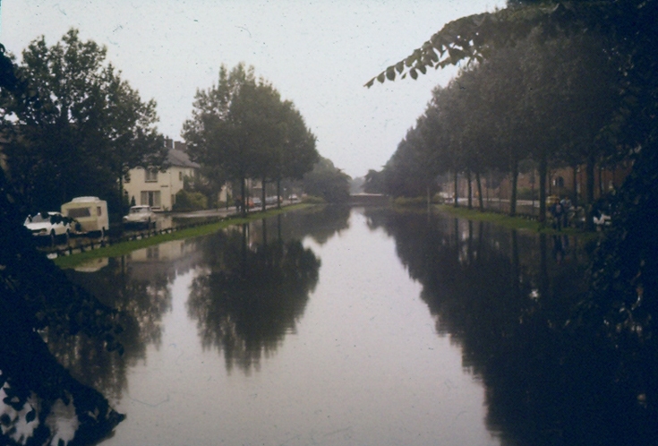 in september 1977 was de Jan van Eyckgracht iets breder als normaal. De foto is gemaakt vanaf de brug bij de Jan Fijtstraat.