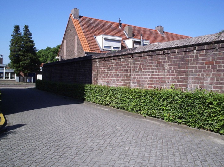 Op de binnenplaats van het voormalig kapucijnenklooster aan de Koenraadlaan had de orde een eigen begraafplaats. Zie ook foto's #40293 en #40297. (Red.)