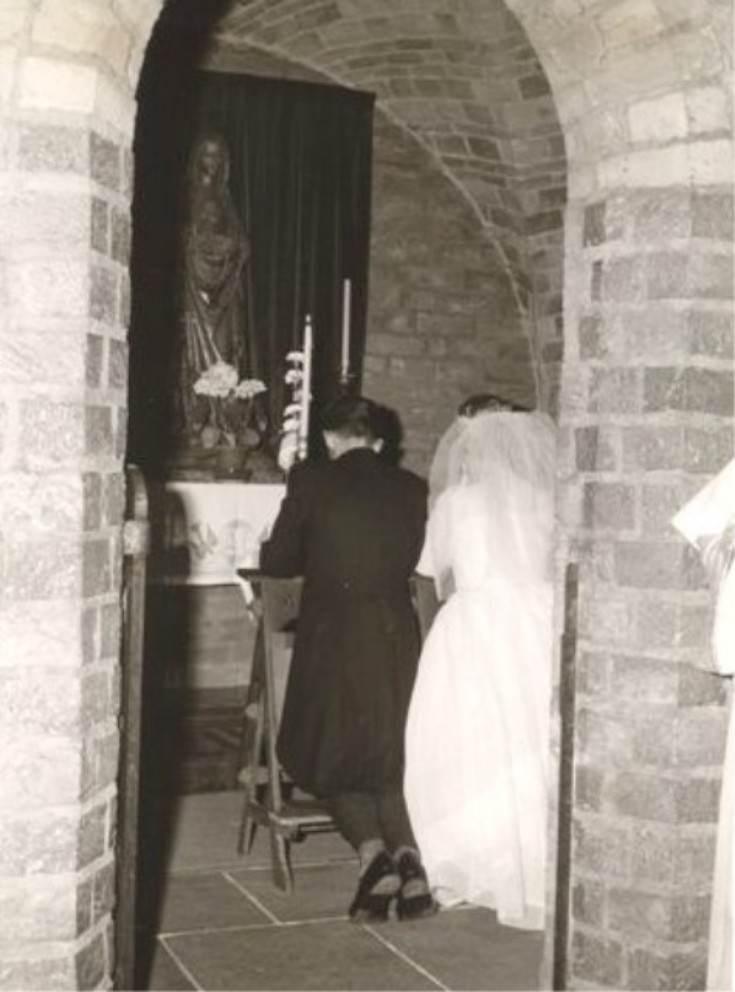Het interieur van de Koenraadkerk, de Mariakapel. Hier tijdens de bruidsmis van Johnnie Suurs en Tjeu Ivits.