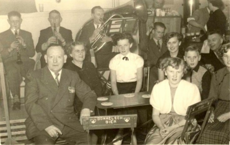 Cafe 't Groenewoud aan de Hagenkampweg. Nou hier zit 't dan: Tontje Welten, me z'n vrouw en keinder: Ria en Willie. En op d'n aachtergrond: Der Oober Aalstrasse Boebe Moezikanten. Scho [meer]